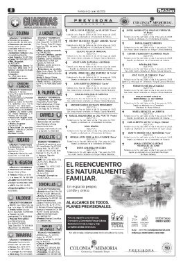 SÁBADO 7 Y DOMINGO 8 SÁBADO 7 Y DOMINGO 8 Sepelio ya efectuado en el Cementerio de Colonia.