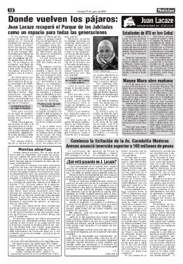 Juan Lacaze: la presen- rio ecológico, áreas par- el estado de las calles y alumnado de diferentes micrófono”. "Preguntarle