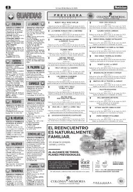 Montaño. Tel. 4536 9630. Farmacia: Del Bravo (29/3 al 4/4) ILSE TERESITA SCARENZIO Falleció en la Paz del Señor el día 25 de marzo de 2025.