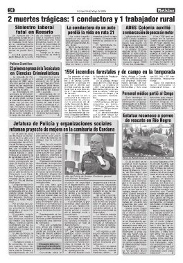 equipos de Montevideo Criminalísticas, en la ral forestal, el subdirec- campo y 1.398 por incen- Congo. Se trata de pro- y asistente dental.-