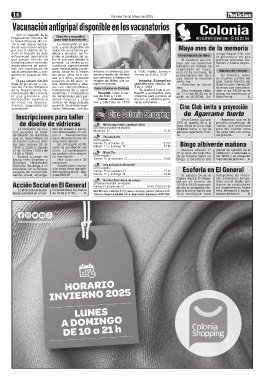 vés del Fondo Rotatorio tos con comorbilidades; Vacunatorios en Colonia 8:00 a 13:00 dad. de mayo con concentra-