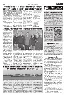 llegada del barco por- autorización, la agencia zona de poca profundi- rísticas han realizado Juan Lacaze - D. Acosta 401 esq. Gardel - dom. H. 10:30