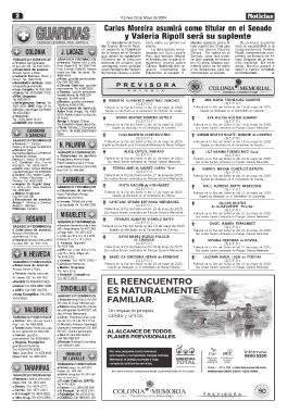 M. de Lobo 454. Tel. 4522 0413. Avda. Artigas 410. Tel. 4586 2144. consagrara como senador Olivera. Habiendo sido re- meterá como es de estilo modo, Moreira pasará a