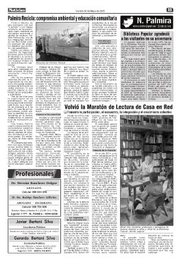 la sensibilización am- Bolsones de Palmira Recicla quien remarcó que todas dad en una jornada atípi- cumpliendo 37 años.
