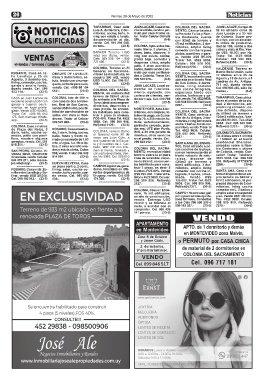 ROSARIO, Casa en ca- OMBUES DE LAVALLE, miento La Anacahuita, en muto por casa en Merce- COLONIA DEL SACRA- Barrio Bella Unión, calle