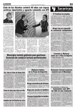 El Municipio de Tara- el municipio todos los lidades. lo que agiliza el Para mayor informa- 12 por primera vez Ro- en Av, Artigas se dispon-