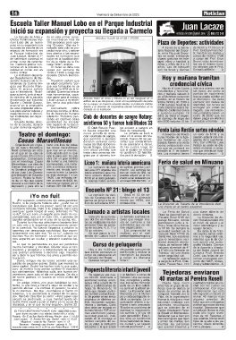 chón. El jerarca señaló brinda en la UTU de la lo- Hoy en el Liceo 2 para mite por primera vez es