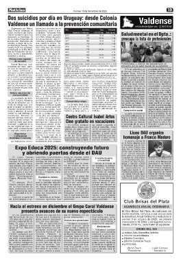 puso al asumir su gestión: ser muy buena para de- que prevenir el suicidio tinuar abriendo sus puer- rectora de INAU Colonia. nóstico se podrán abordar