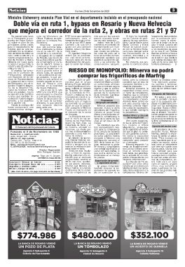 ne, de la Dirección Na- de Nueva Helvecia». guay, incluido el ubicado vigente y que la concre- Minerva presentó la valor de los activos trans-