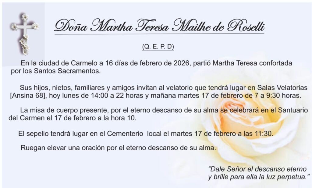 La misa de cuerpo presente se realizará mañana 17 de febrero a la hora 10