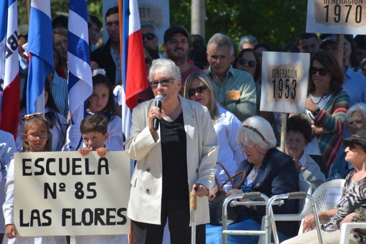 En un tramo especialmente emotivo, envió un abrazo a una compañera ausente por motivos de salud y recordó a quienes ya no están, invitando a tenerlos presentes con cariño en una fecha tan significativa. Su testimonio reflejó cómo el Liceo de Ombúes de Lavalle no solo forma estudiantes, sino que construye historias de vida y lazos que perduran más allá del tiempo.